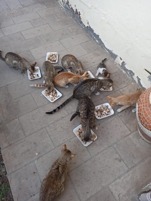 Hierbij nog wat foto’s van de katten die bij mij komen eten en een aantal ook komen knuffelen. In de zomer altijd meer omdat veel buitenlanders die hier in de wintertijd zijn, ook voor straat katten zorgen. Dit valt dan helaas weg in de zomer en dan weten de katten hun weg wel weer te vinden, naar mij bijvoorbeeld. Mijn overbuurman geeft ze twee keer per dag te eten als ik er niet ben,
