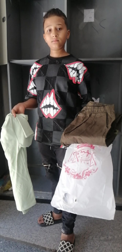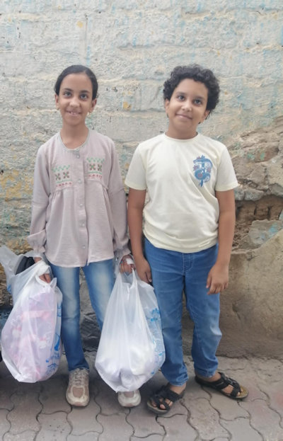 Deze twee kinderen op de foto’s hebben helaas hun ouders verloren in een auto-ongeluk. De lieve oma zorgt nu voor hen. Niet gemakkelijk want ze leeft ook van een klein pensioentje. We hebben alles samen gekocht en voor de oma nog een jurk.